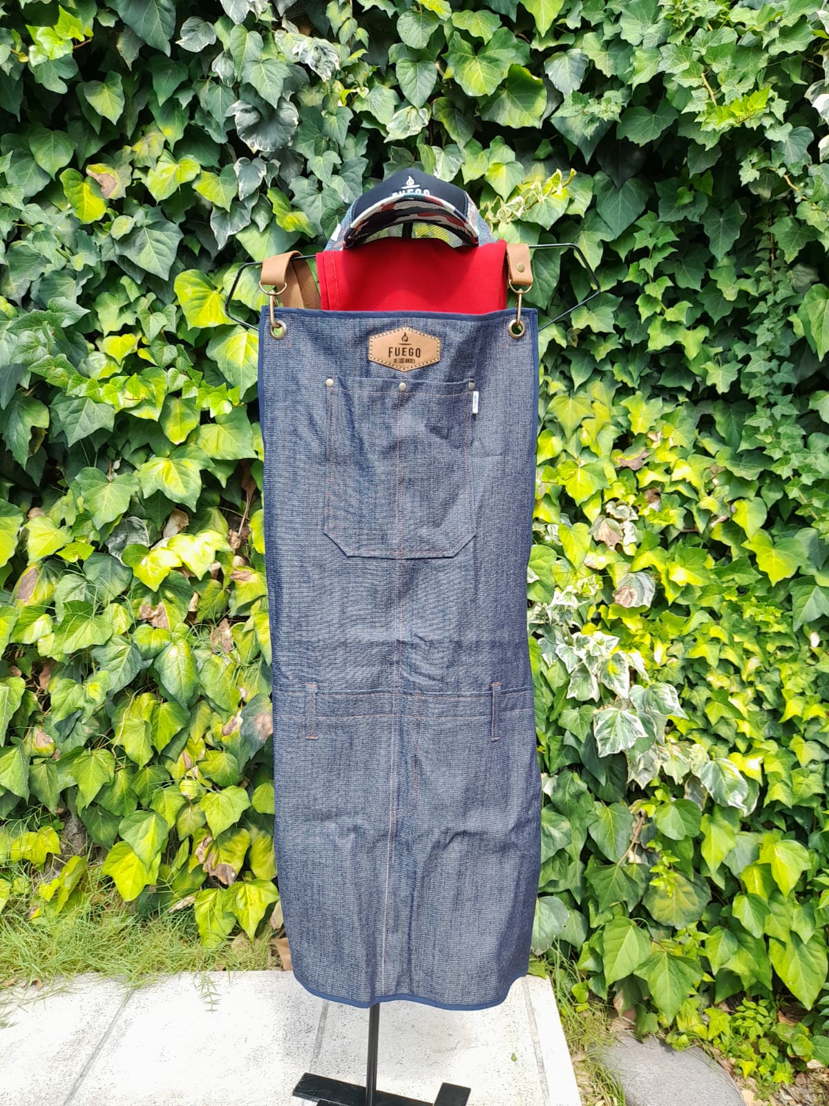 Fabricado en jean con tiras de cuero. Talle universal. Agarres Regulables