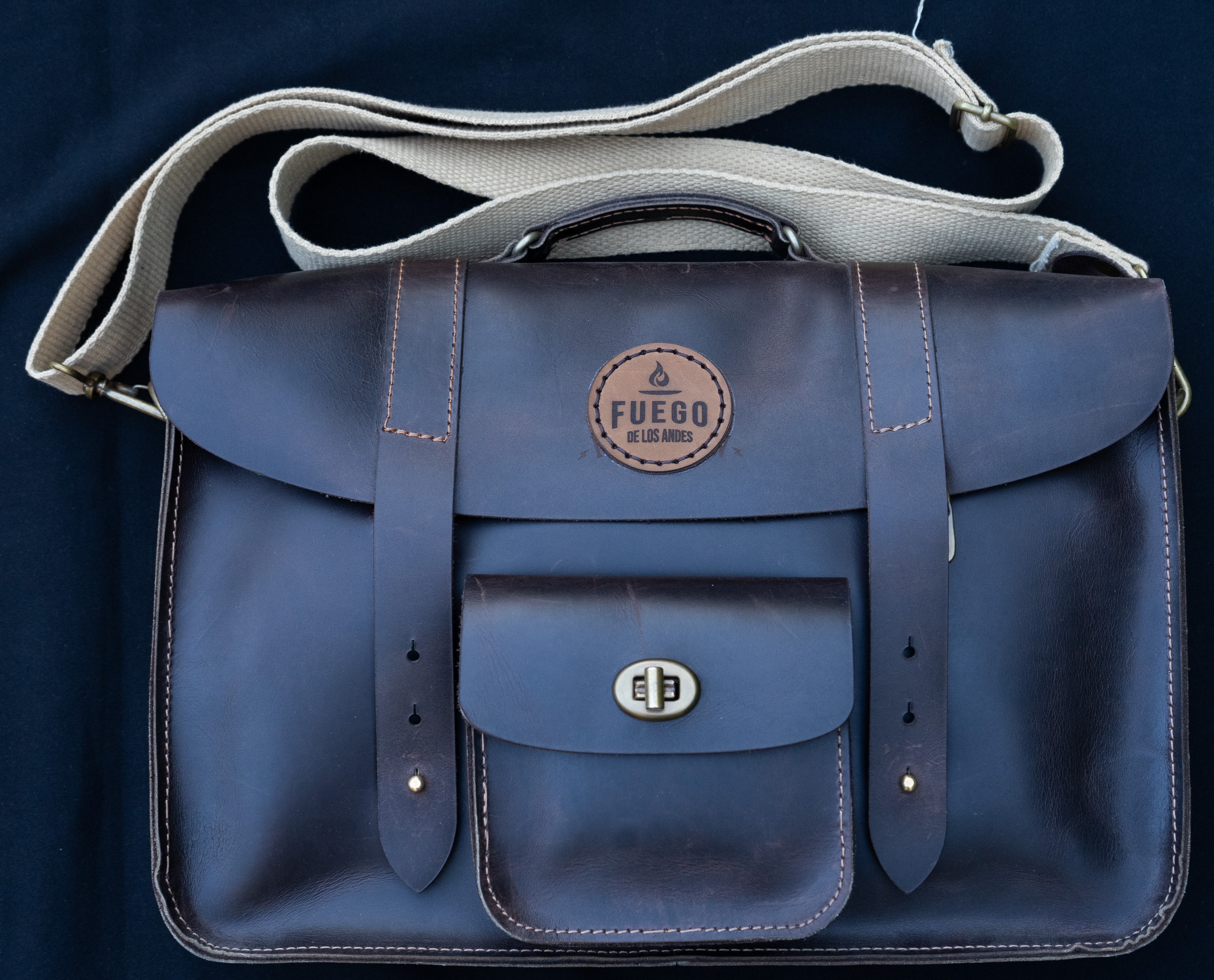 Maletín de cuero, fabricado a mano, bolsillo interno para notebook.